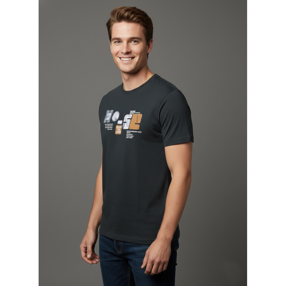 Refresh your casual wardrobe with this men’s charcoal black graphic printed T-shirt, designed for a bold yet minimal look. Made from soft, breathable premium cotton, this T-shirt ensures all-day comfort with a smooth feel on the skin.