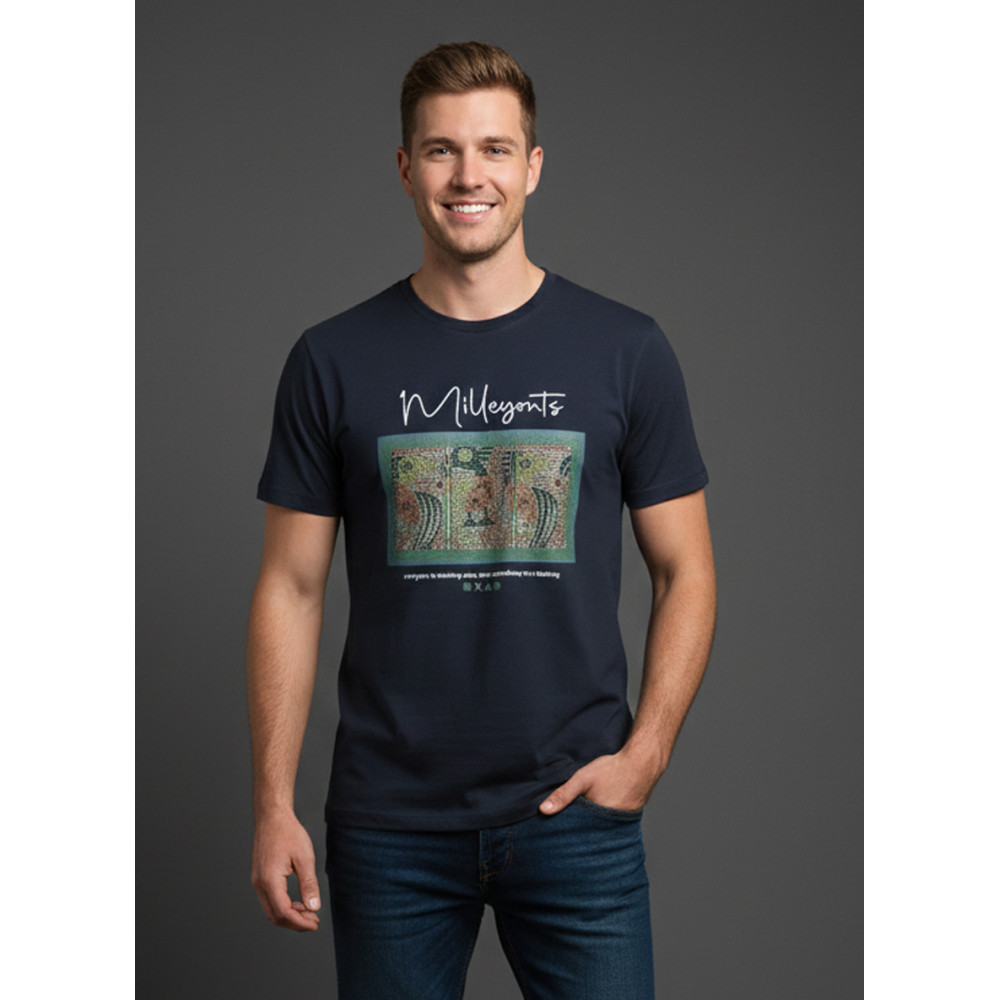 Upgrade your everyday style with this men’s navy blue graphic printed T-shirt. Designed with an elegant artistic front print and minimal typography, this T-shirt offers a perfect blend of modern fashion and timeless appeal.
