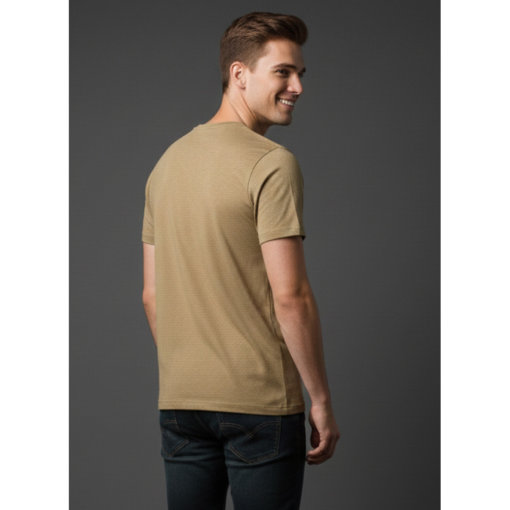 The front features a minimal yet artistic graphic print with typography, giving it a contemporary and classy vibe. Designed with a regular fit, round neck, and short sleeves, it pairs effortlessly with jeans, chinos, or casual trousers—ideal for daily wear, outings, or relaxed weekends.