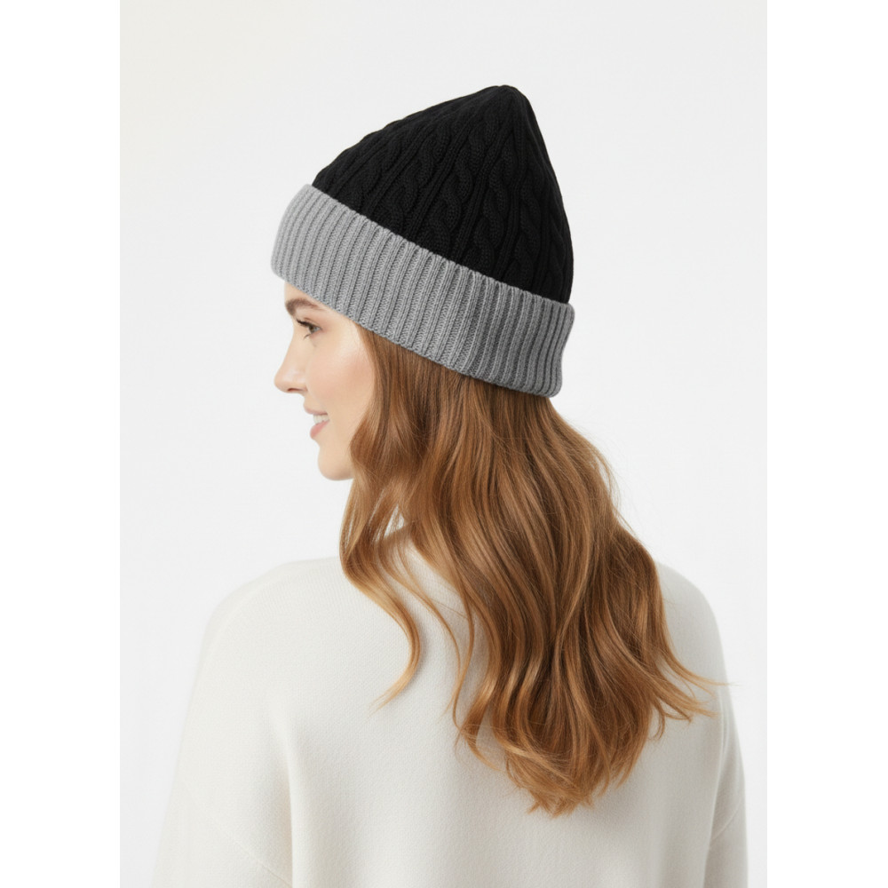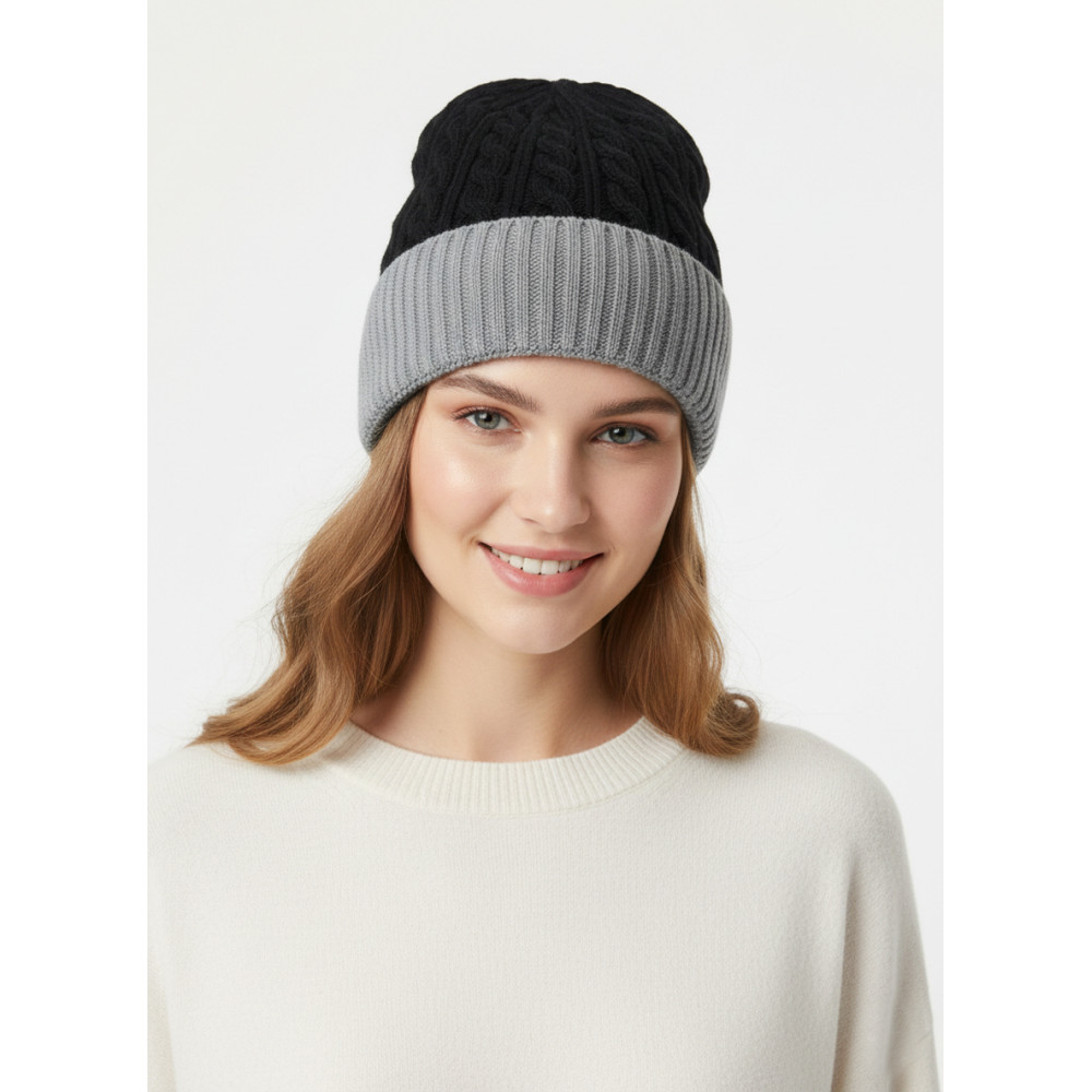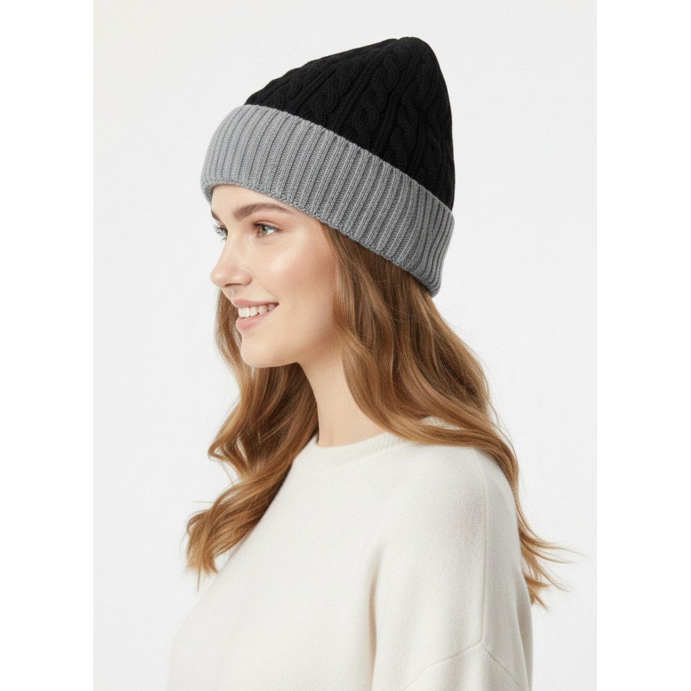 Stay cozy and stylish with this premium dual-tone knit beanie cap. Designed with a soft ribbed fold-over cuff and textured cable knit pattern, this winter cap offers both warmth and a modern look. The stretchable fabric ensures a comfortable fit for all-day wear, while the classic black and grey combination makes it easy to pair with any outfit.
