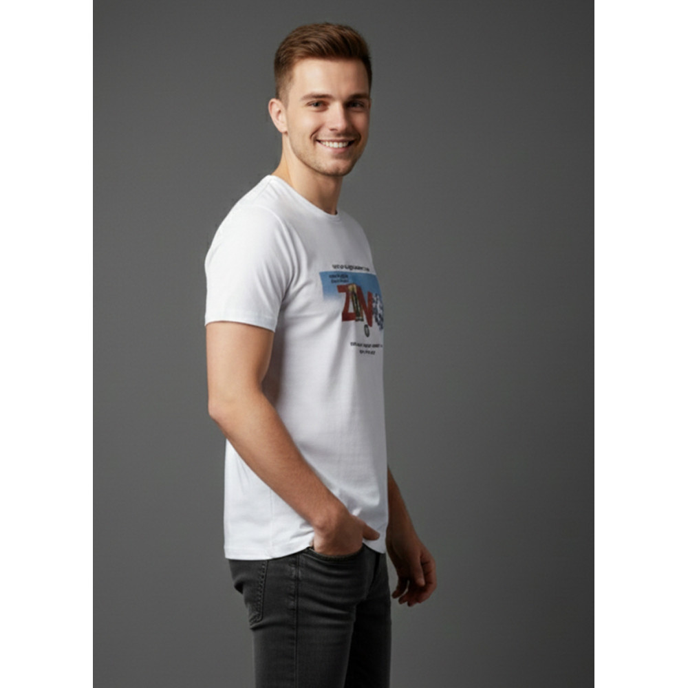 The classic white color gives a clean and versatile look, making it easy to pair with jeans, chinos, or shorts. Ideal for casual outings, college wear, travel, or daily use, this T-shirt is designed for men who prefer simple yet meaningful fashion.