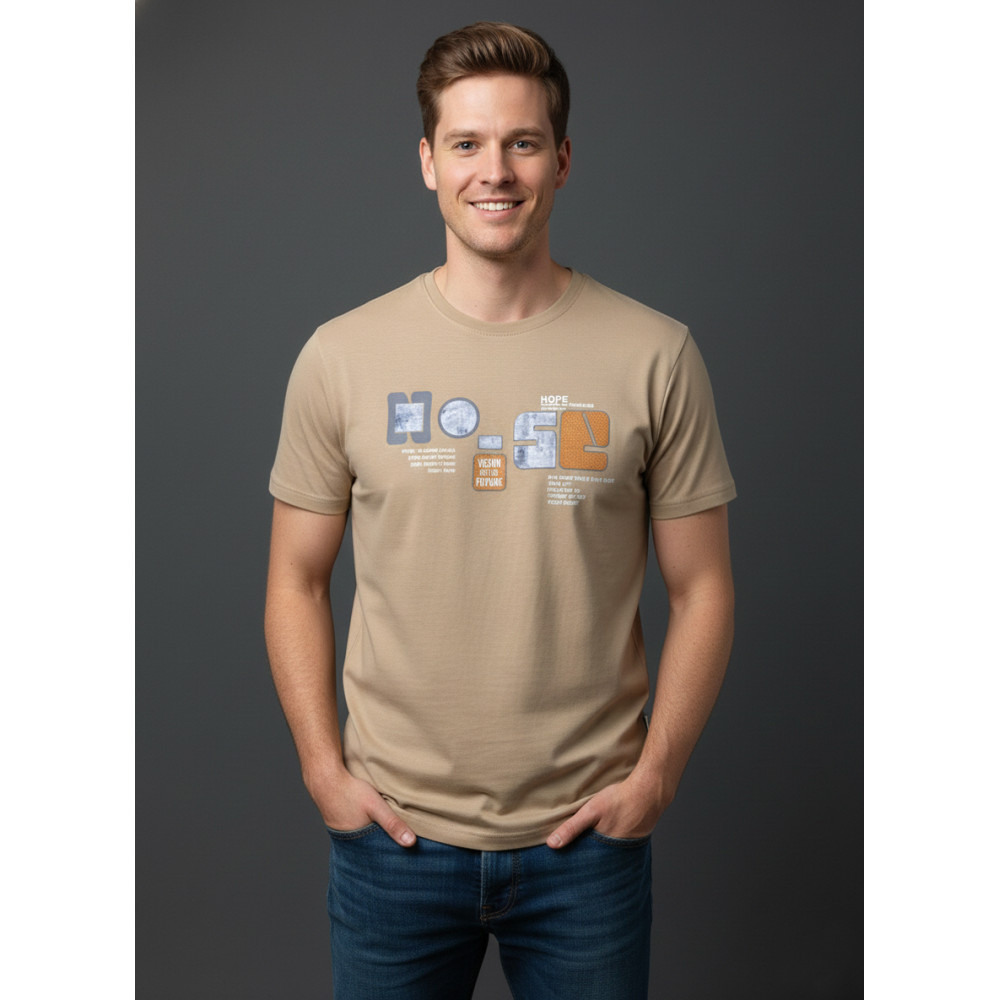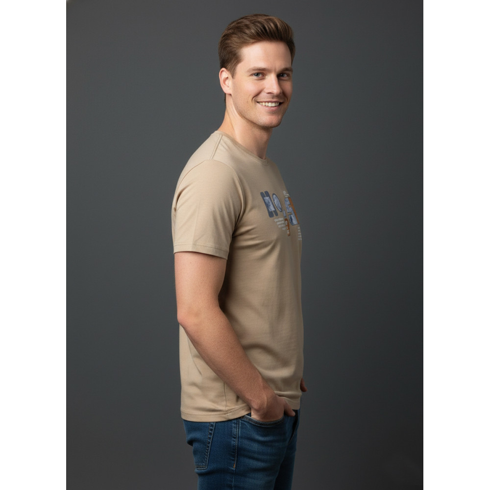 Upgrade your everyday style with this premium beige graphic T-shirt for men. Crafted from soft, breathable cotton fabric, this T-shirt offers all-day comfort with a modern slim fit. The subtle yet stylish chest print adds a contemporary touch, making it p
