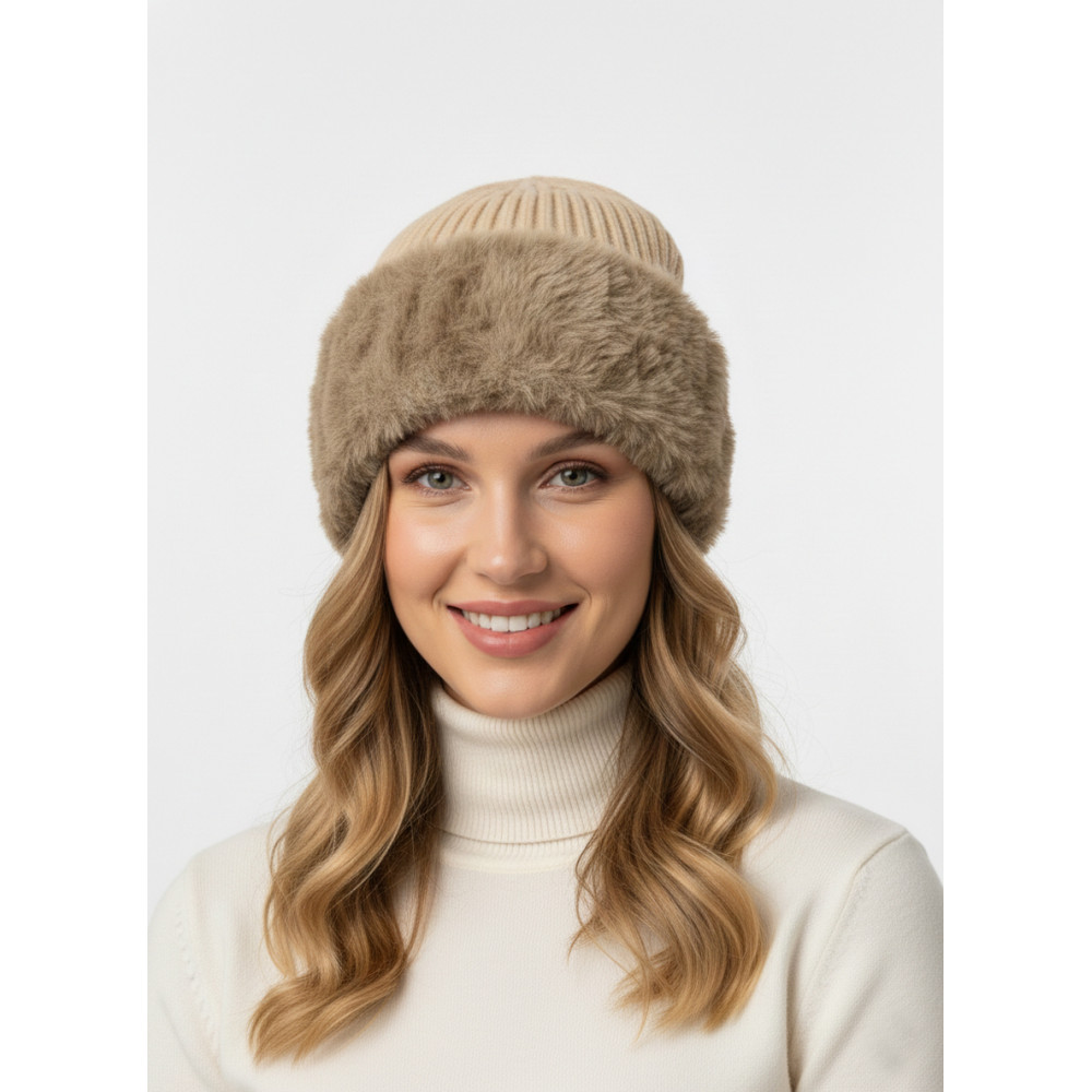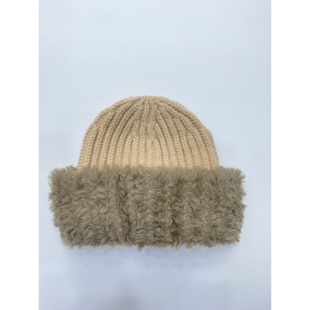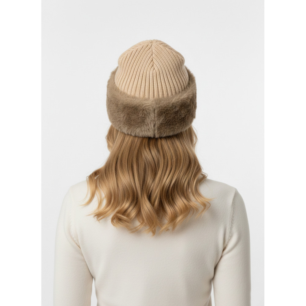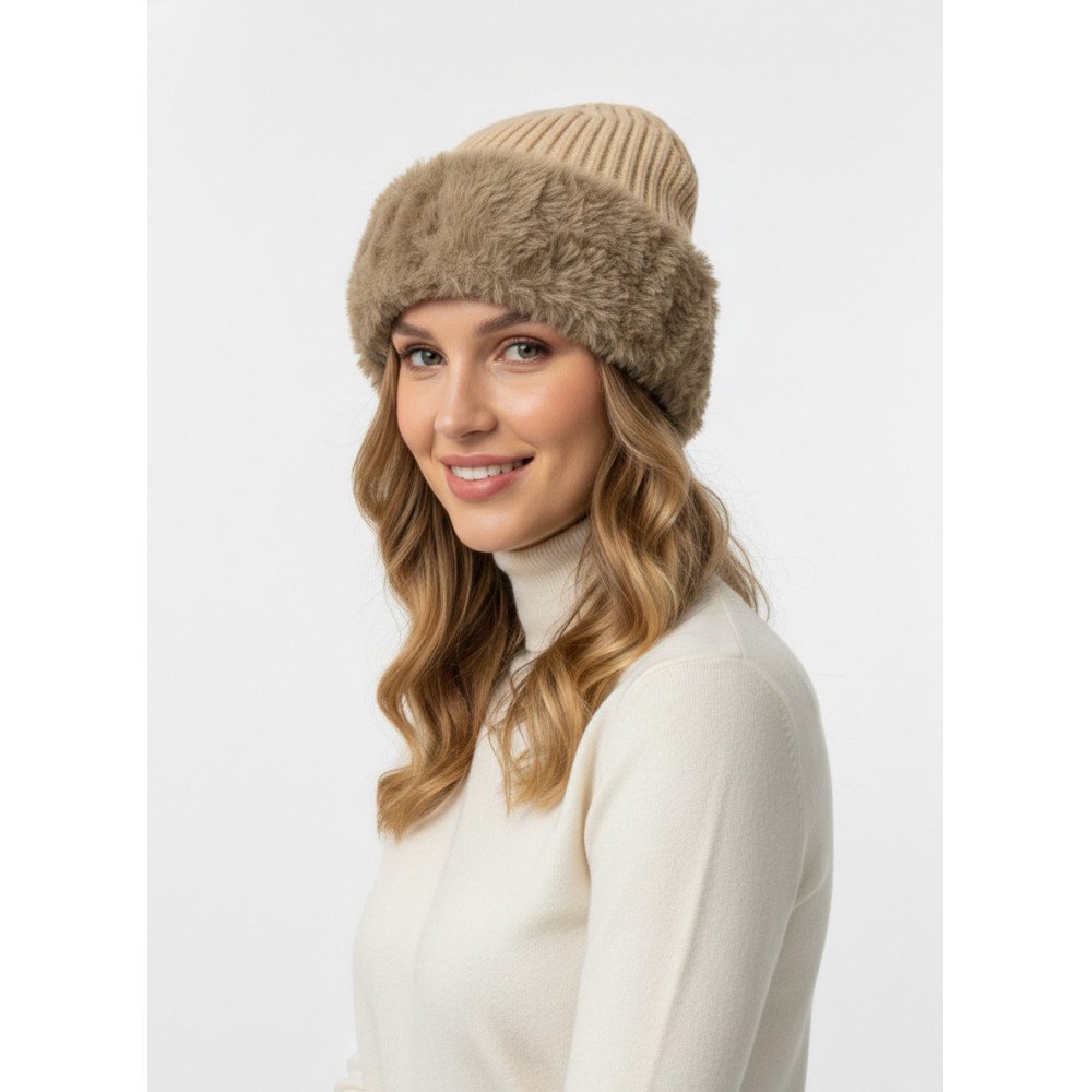 Winter Woolen Knitted Beanie Cap with Faux Fur Fold