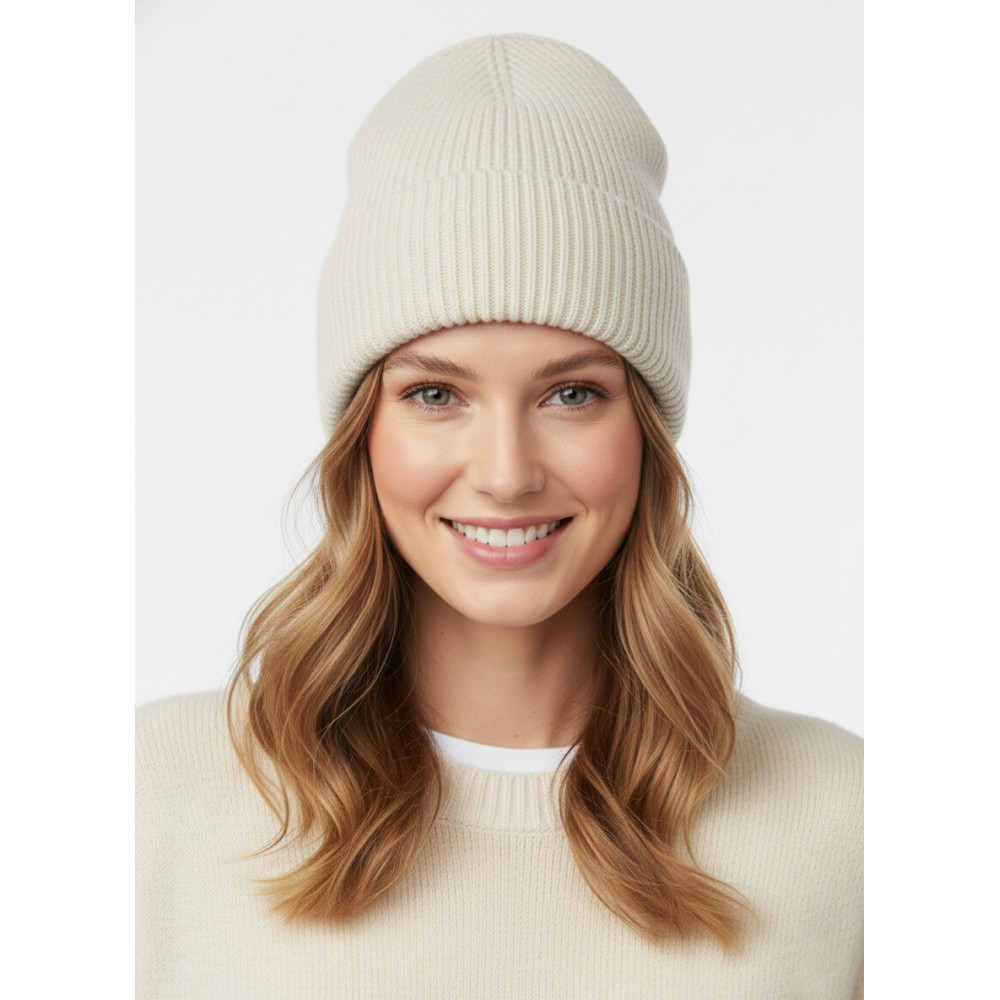 Keep your cold-weather look soft and sophisticated with this classic ribbed knit beanie in a warm cream tone. Made from a cozy, stretch-knit fabric, it provides a snug and comfortable fit that helps retain warmth without added bulk. The cuffed design offers extra coverage around the ears, while the neutral shade pairs effortlessly with both casual and elevated outfits. Perfect for everyday wear, weekend outings, or layering through the colder seasons, this beanie delivers timeless style with dependable comfort.