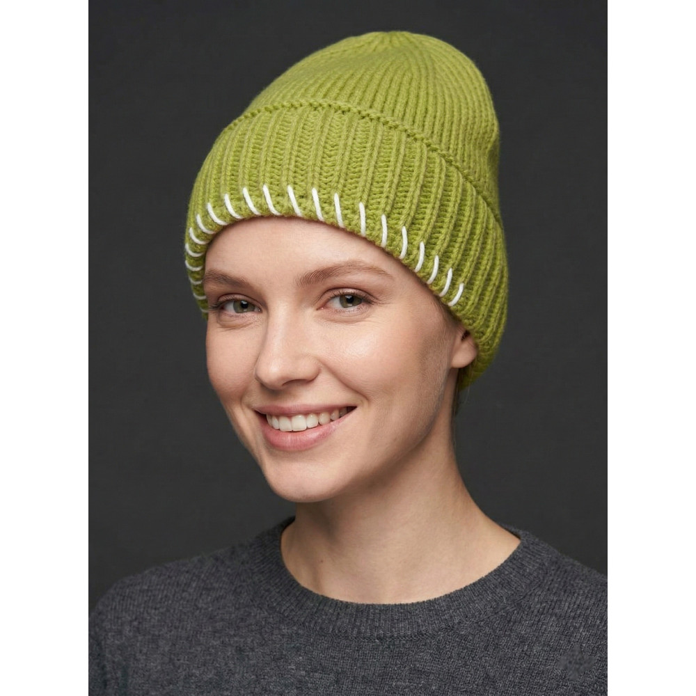 Green Contrast Stitch Beanie.